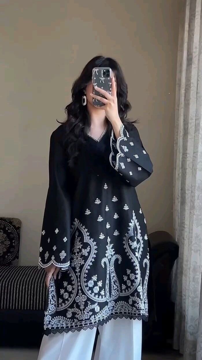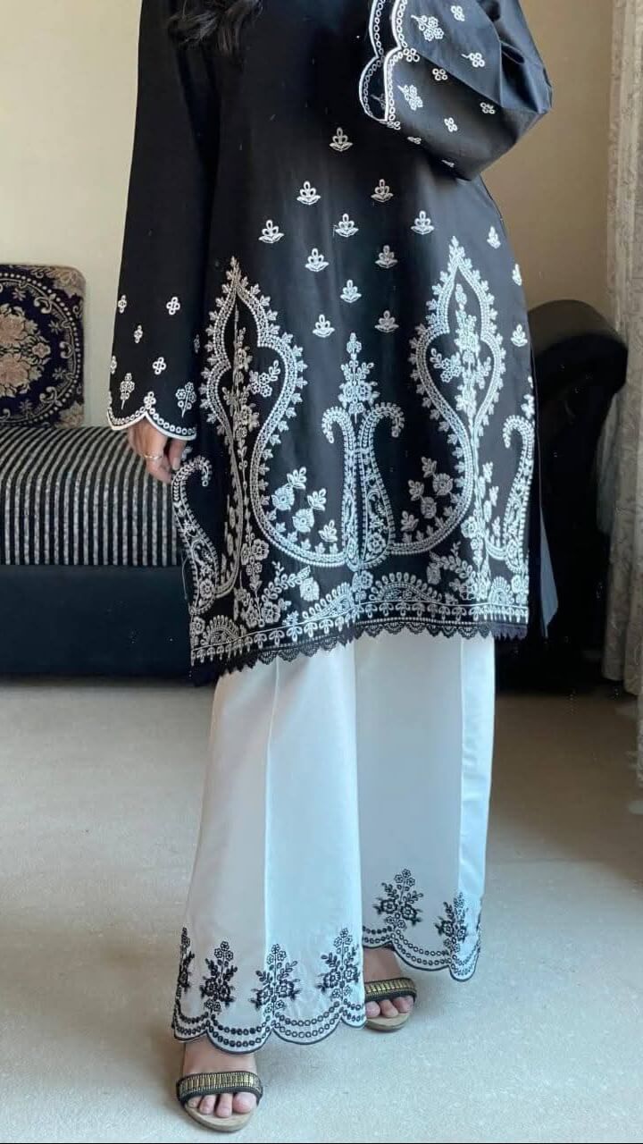 ফেব্রিকঃ প্রিমিয়াম মুল-কটন কাপড়ের উপর এমব্রয়ডারি ওয়ার্ক, ২ পিসের সেট।